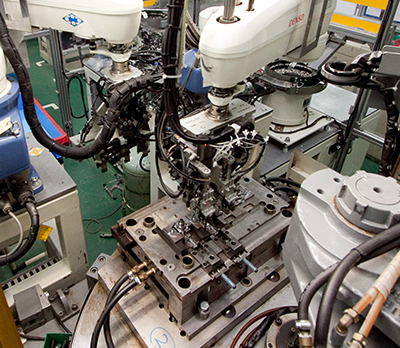 また、人の手にしかできない作業を除いて、コネクタ部品のリテーナへの防水ゴムの一次係止、成形品へコンデンサを嵌めてのネジ締めなど、自動機によるアッセンブリーも実績があります。