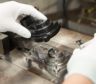 In order to maintain the quality of insert molded products, the precision of the inserted component units (metal stamped inserts) is important. In order to ensure this important precision, we both design and manufacture stamping dies in-house and utilize them for the integrated manufacturing of metal stamped inserts. This enables us to maintain quality via complete in-house production.